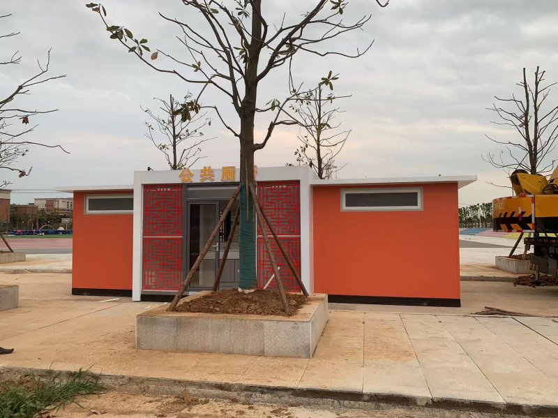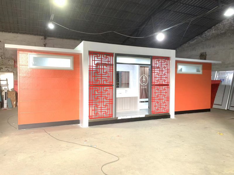 拼裝廁所;在廠里做好各個(gè)廁所部件,再到現(xiàn)場組裝在一齊,適合不易運(yùn)輸?shù)拇笮蛶_@座箱式廁所,女廁5個(gè)蹲位內(nèi)配工具間,男廁2個(gè)蹲位+2小便斗,第三衛(wèi)生間由殘疾馬桶、助力洗手盆和兒童馬桶、兒童洗手盆外加?jì)雰号_等設(shè)施。廁所前后有窗,通風(fēng)采光,前部走廊裝有屋檐,防雨防曬。此廁所位于公路綠道邊,整體大氣,功能齊全,造型美觀,是一道難得的靚麗景觀!